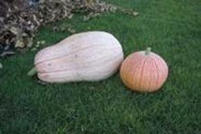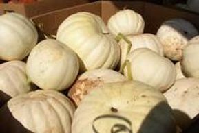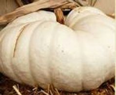 A flat pumpkin with a creamy white rind and thick orange flesh. Its large size makes for a great fall decoration.