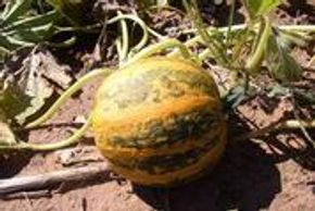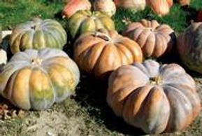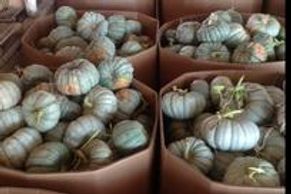 A French heirloom variety with a Cinderella shape and an unusual buckskin color at maturity, averaging 9 to 15 pounds and has a flat shape with 6 to 15 inch wide, heavy ridges. Delicious flesh for baking.