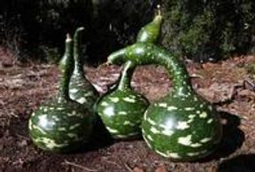 Thick, dipper-shaped fruit that resemble swans with their necks curved. Great for crafts, they are a large gourd that have speckles when green.