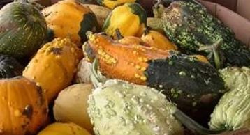 Large gourds come in a variety of shapes, colors, and sizes - from 5 to 20 pounds. All have hard shells and are covered with warts and large vines. A very popular item!